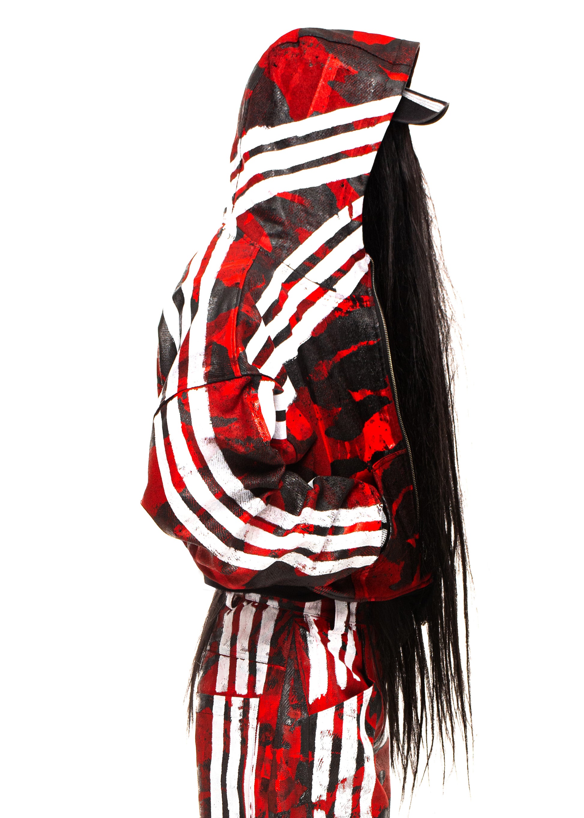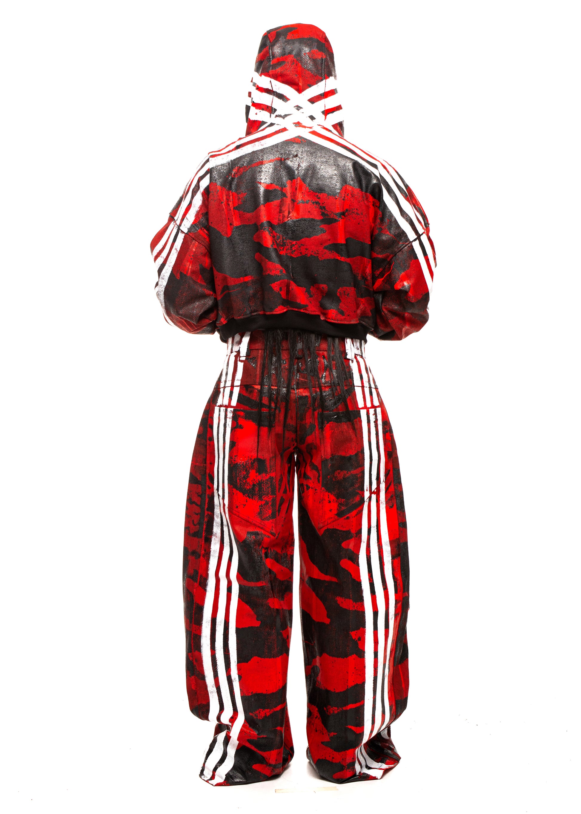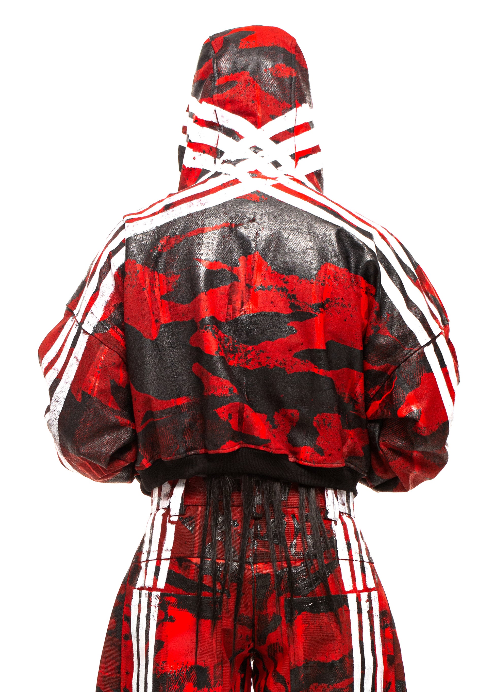 CAMO STRIPES WAXED RED ZIP HOODIE